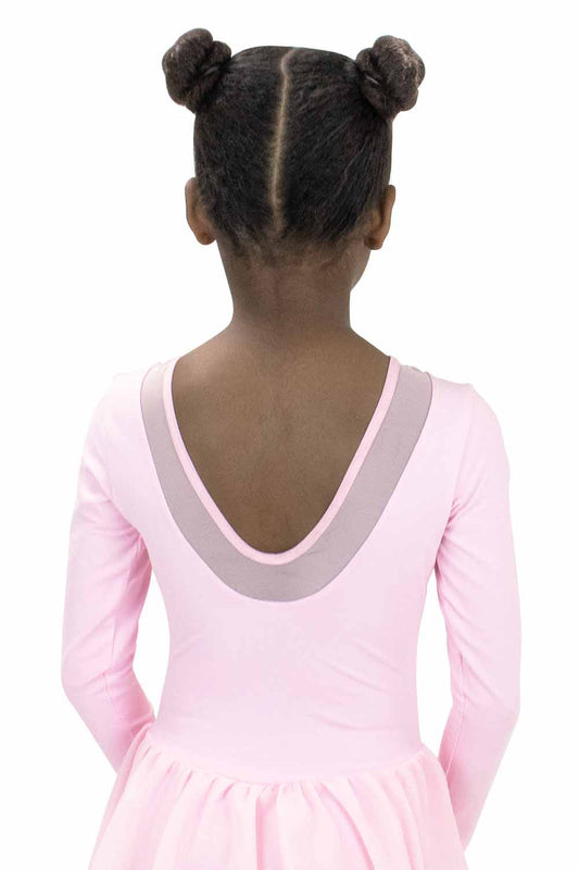 Girls' Microfiber Mesh Insert Long Sleeve Dress