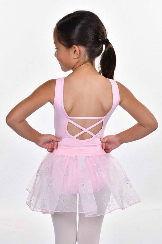 Girls' Microfiber Short Sleeve Criss-Cross Back TuTu Dress