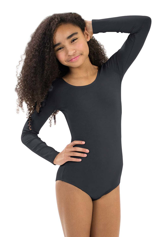 Girls' Microfiber Mesh Insert Boat Neck Leotard