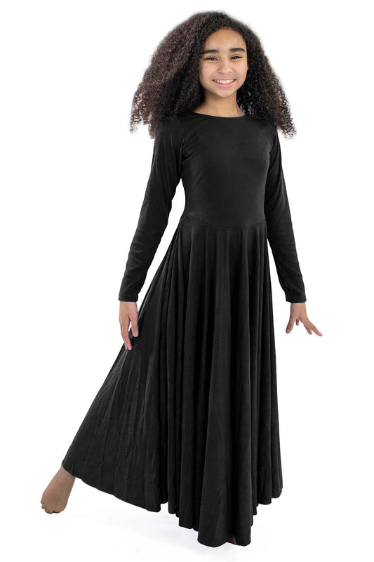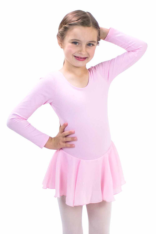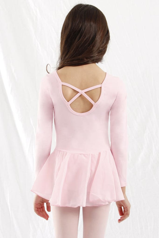 Girls' Microfiber Mesh Insert Long Sleeve Dress