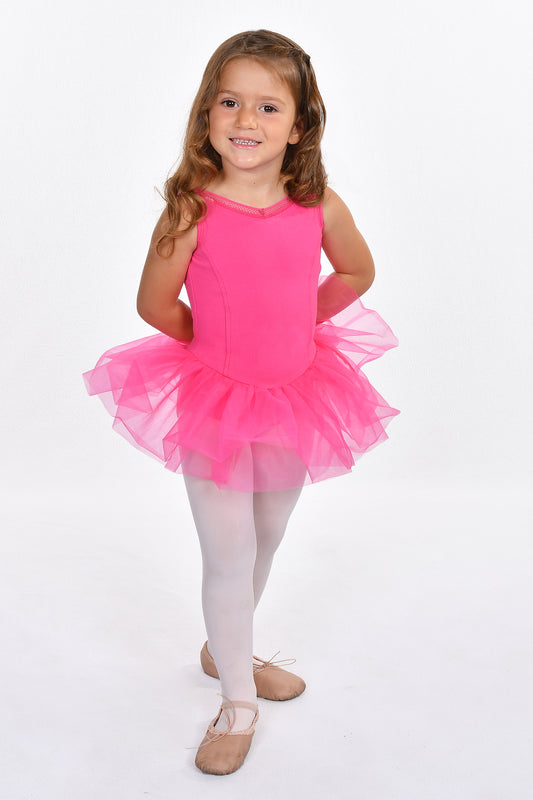 Girls' Detailed Trim V Back Tutu Dress Leotard