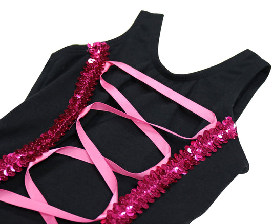 Girls' Satin Trim Cami with Tear Drop Back Dress Leotard