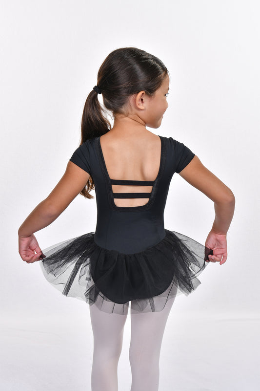 Girls' Detailed Trim Short Sleeve Square Back Tutu Dress Leotard