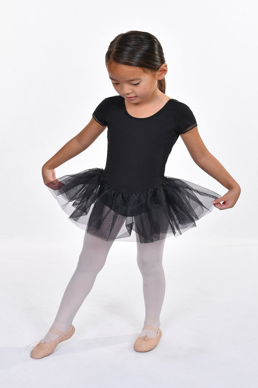 Girls' Satin Trim Short Sleeve Square Back Tutu Dress Leotard