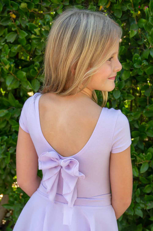 Girls Short Sleeve Leotard Waterfall Bow Back Detail