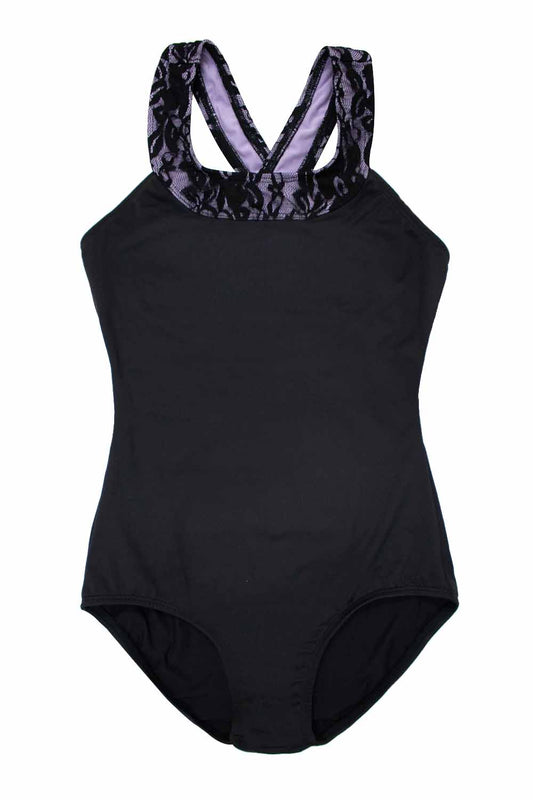 Cami Leotard Glitter Flower Mesh Overlay Double Crisscross Back