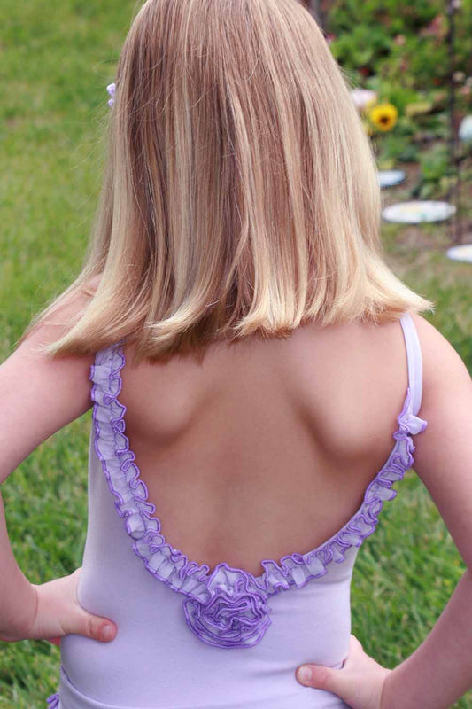 Girls' Cami Leotard with Ruffle Neckline Flower Detail